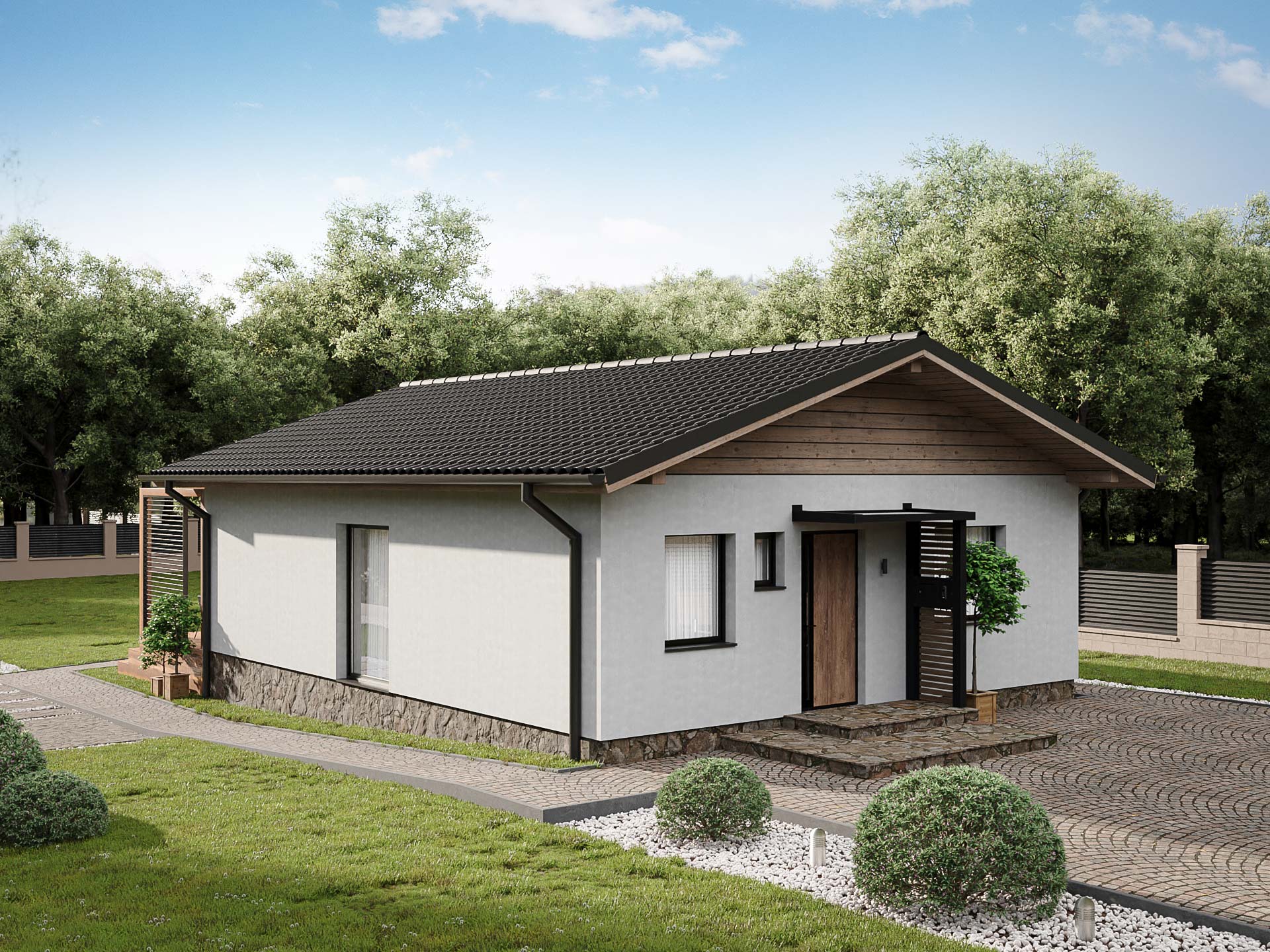 Dom môže byť murovaný alebo drevený. Strecha objektu je sedlová. Dom je vhodný pre orientáciu vstupu na západ a terasy na východ.